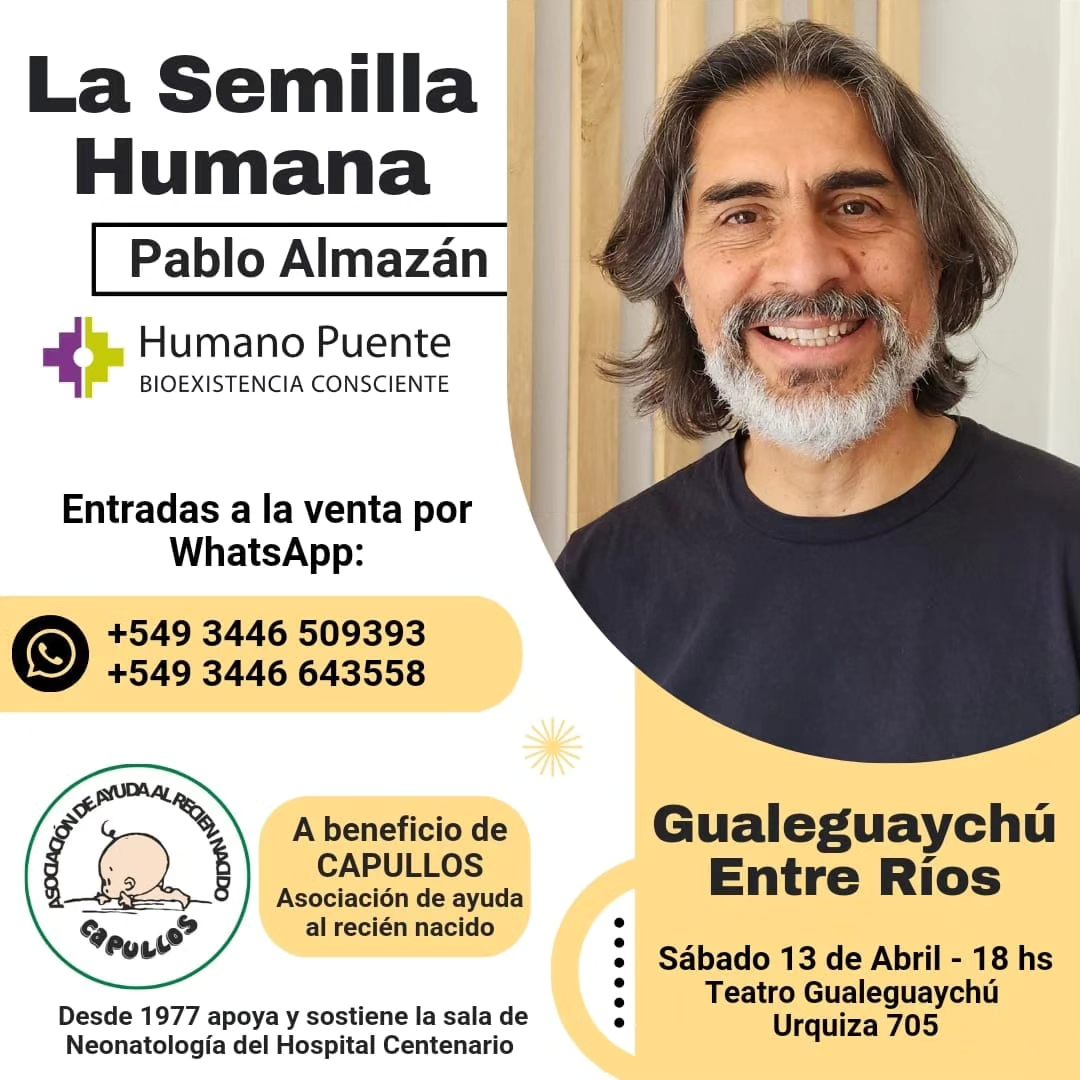 Pablo Almazán creador de Humano Puente y La Bioexistencia Consciente se presentará con La Semilla Humana en el Teatro Gualeguaychú, el día sábado 13 de abril desde las 18 hs.